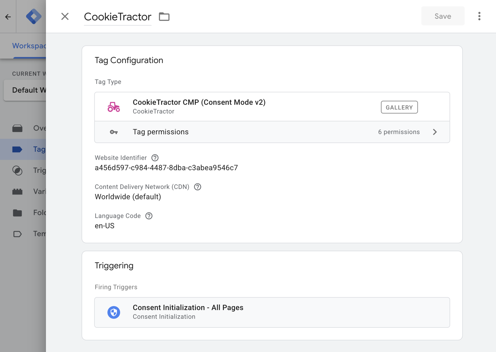 Ensure that Triggering is set to Consent Initialization - All Pages.