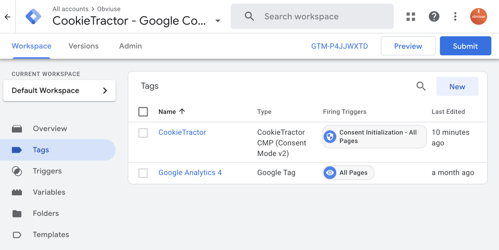 This is a step-by-step guide on how to implement CookieTractor using Google Tag Manager, GTM, with full support for Google Consent Mode v2. We install CookieTractor on a page using our GTM Template and includes a Google Analytics 4 (GA4) account.