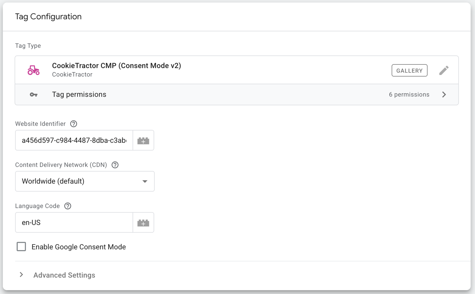 To use Advanced Mode, make sure that Enable Google Consent Mode is checked inside our Tag Template: